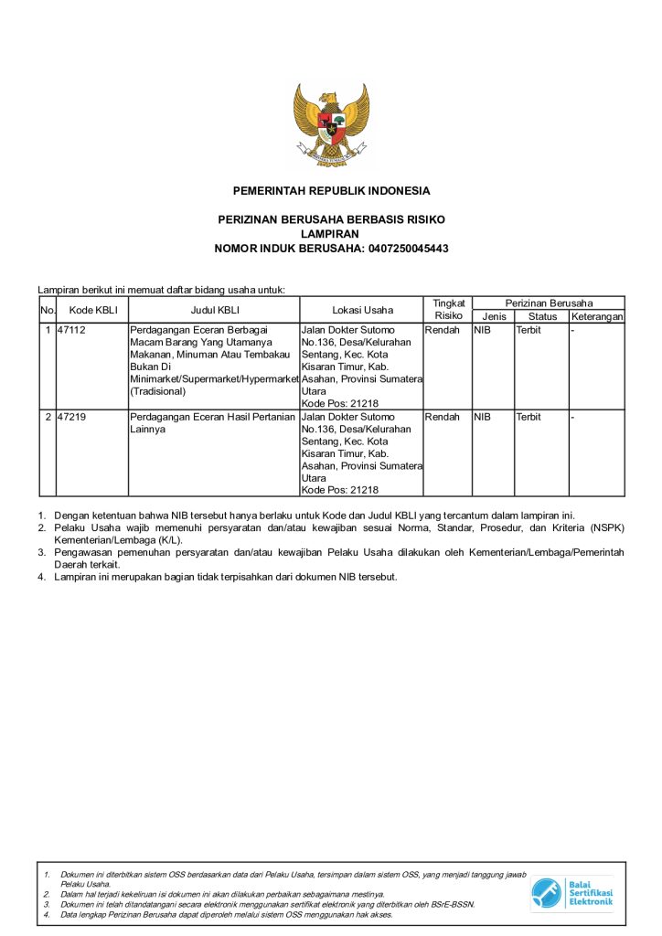 Jalan Dokter Sutomo No. 136, Dsa/ kelurahan Tegal Sari, Kec. Kota Kiisaran Barat, Kab. Asahan, Provinsi Sumatra Utara